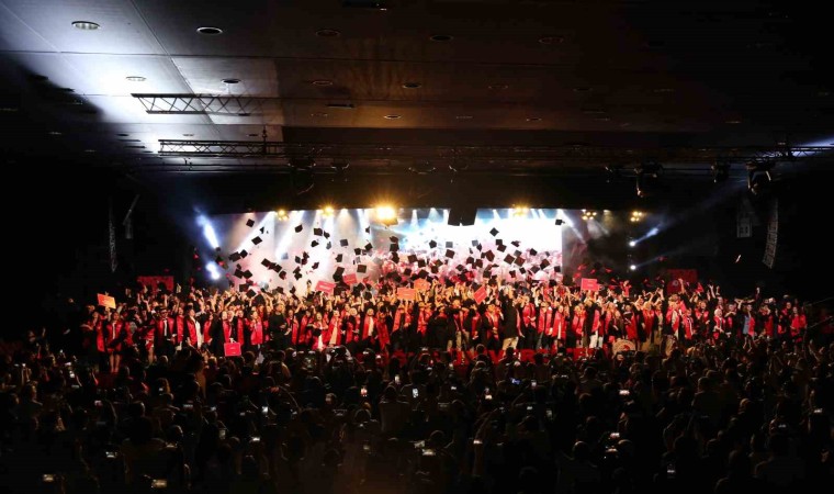 DOU Dans Kulübü’nün sergilediği performansın ardından sahneye çıkan öğrenciler Doğuş Üniversitesi Mezuniyet Andını okudu. 4 bine yakın öğrenci kep atarak mezuniyet sevincini kutladı.