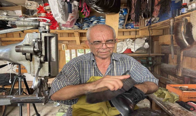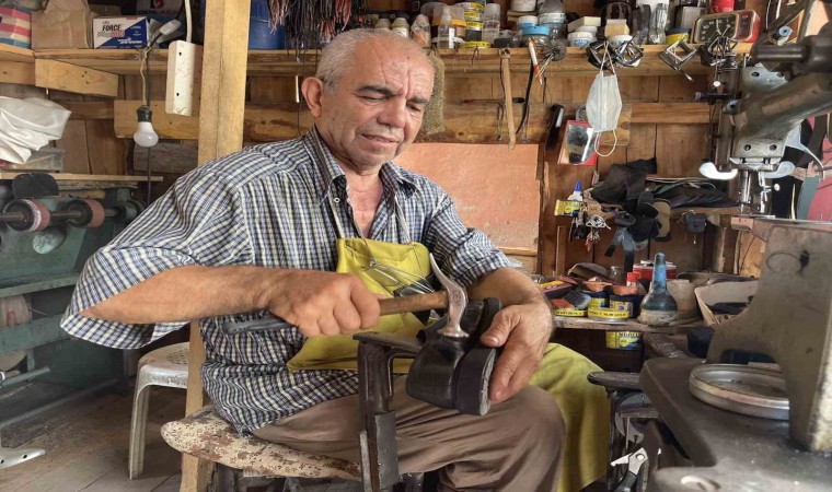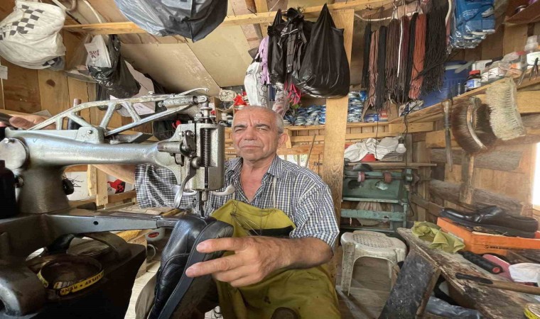 Osmaniye’de ayakkabı tamirciliği yapan Sezai Avşar (74), 64 yıldır kendi yaptığı 4 metrekare ahşap kulübede mesleğini yaşatmaya çalışıyor.