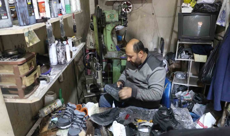 Siirt’te yaşayan 45 yaşındaki Mehmet Ali Minsin, 9 yaşında başladığı ayakkabı tamir işini 32 yıldır sürdürüyor.