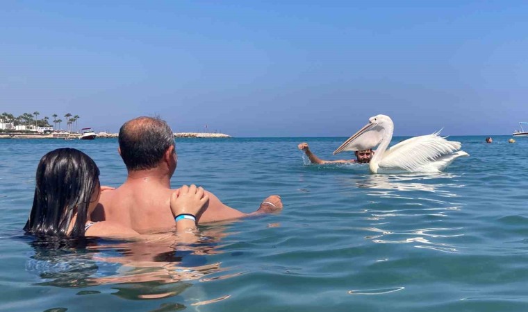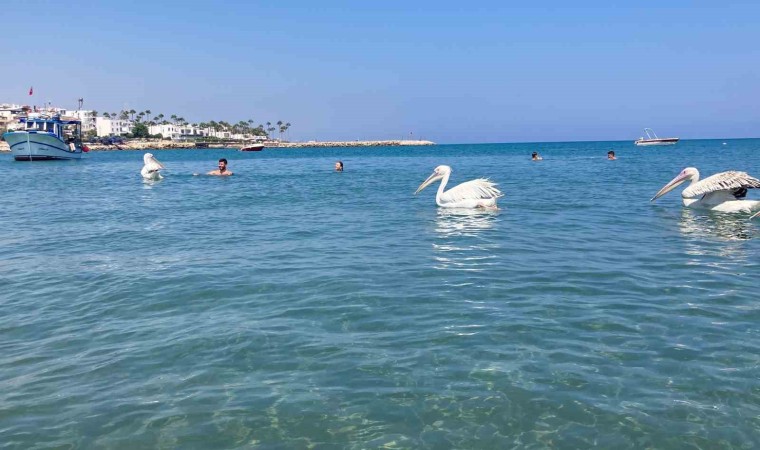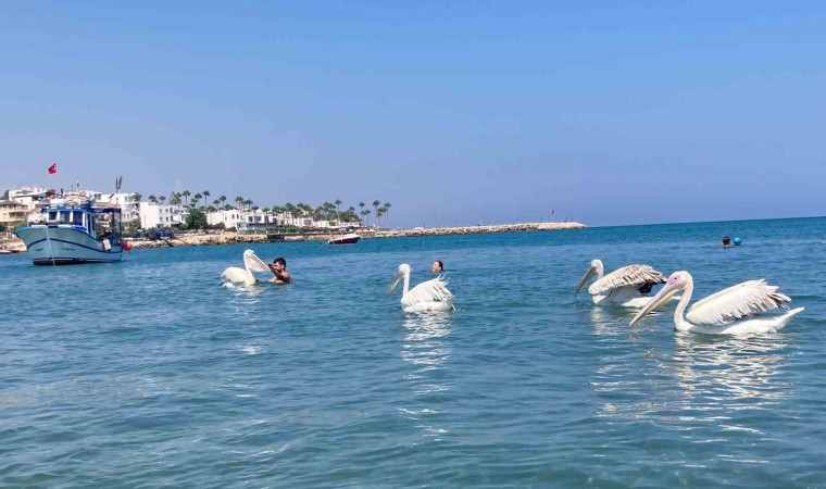 Türkiye’nin turizm merkezlerinden Mersin’de 4 pelikan tatilcilere eşlik etti, ortaya renkli görüntüler ortaya çıktı.