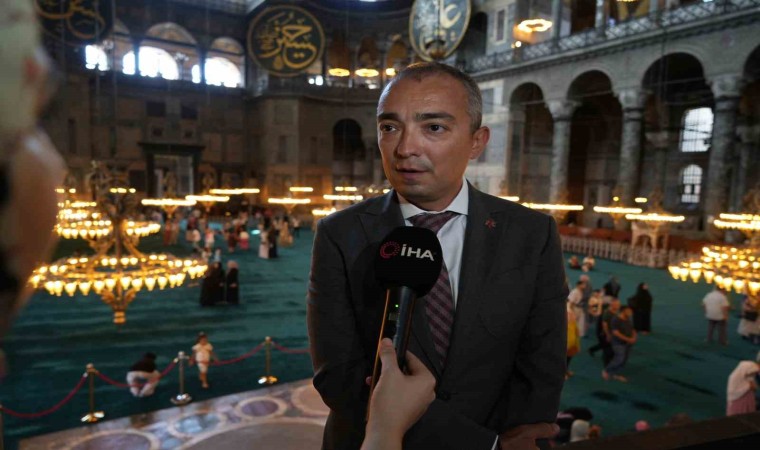 Ayasofya-i Kebir Camii Şerifi’ni bu yıl 4 milyon 500 bin kişinin ziyaret ettiğini söyleyen Vakıflar Genel Müdürlüğü İstanbul 1. Bölge Müdür Yardımcısı Levent Çetin, “Ayasofya-i Kebir Camii Şerifi açıldığı günden bugüne kadar 2020 ve 2021 yıllarında pandemi nedeniyle ziyaretçi alıyorken pandeminin sona ermesiyle beraber 2022 yılında yaklaşık 13 milyon, 2023 yılında 12 milyon 500 bin ziyaretçi kabul etti. 2024 yılında da alt ve üst kat toplam olarak 4 milyon 500 bin ziyaretçi sayısına ulaşmış durumundayız. Ayasofya Camii’nde bu 4 yıl içerisinde toplam 2 etap olacak şekilde restorasyon çalışmalarına başlandı. 1. etapta Ayasofya Camii bahçesinde bulunan türbelerde restorasyon çalışmaları yürütüldü ve bunlar tamamlanmak üzere. Aynı zamanda Ayasofya Camii ile alakalı ‘bütüncül bir projemiz’ oldu. Bu proje çalışmasında tüm literatür tarandı. Bugüne kadar yazılı basın ve literatürde Ayasofya-i Kebir Camii Şerifi ile ilgili bütün veriler, veri tabanı haline getirildi. Caminin bütün detaylı projeleri, restorasyon projeleri de dahil olmak üzere hazırlanıyor. Bunlarda tamamlanmak üzere. 2. Etap olarak da Ayasofya Camii’nin yapı sağlığı açısından 2. Beyazıt Minaresi ile ilgili çalışmalarımız başladı ve devam ediyor. Burada depremle ilgili bir güçlendirme çalışması başladı. Aynı zamanda camimizin 3 tane cephesinde bulunan çimento bazlı sıva uygulamalarını sökülmesi ve iyileştirilmesiyle ilgili çalışmalarımıza başlandı. Bir cephemizde iskelemiz kuruldu. Devamında da Ayasofya Camii kubbe kurşunlarıyla alakalı çalışmalarımıza başladık. Bunlar yapının genel sağlığının iyileştirilmesi yönünde yapmaya başladığımız çalışmalar. Literatür araştırmaları sonrasında yapılan çalışmalarla Ayasofya Camii’nin bir tane dijital ikizi elimizde var” şeklinde konuştu.