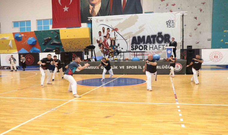 "Amatör Spor Haftası" kutlamaları Samsun’da coşkuyla gerçekleşti. Canik Atatürk Spor Salonu’nda düzenlenen kutlamalarda halk oyunları, muay thai, cimnastik ve capoeira gösterileri yapıldı. Kutlamalarda konuşan İl Müdürü Feyzullah Dereci, “Amatör Spor Haftası ile Samsun da spor kültürünü yayarak, her hanede, spor yapan kişi sayısını artırmak, hedeflerimiz arasındadır. Amatör Spor Haftası’nda, hafta boyunca yapılan etkinliklerle halkımıza düzenli fiziksel aktivite alışkanlığı özendirilmekte, spor merkezlerimizde spora yeni başlayan çocuklarımıza müsabaka tecrübesi kazandırılmakta, ayrıca spor yapan Tüm bireylere de spor bilincinin oluşması sağlanmaktadır” dedi.
