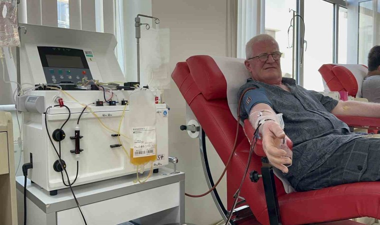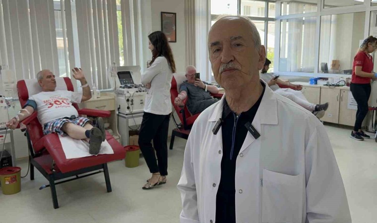 Türk Kızılay ve çeşitli hastanelere bağışladığı kanlarla 6 kez dünya rekoru kırdığını belirten 63 yaşındaki Emin Şahin, 467. bağışını Manisa’da gerçekleştirdi.