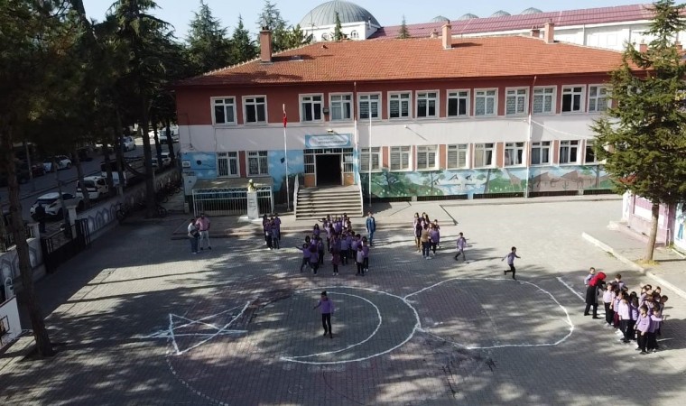 Kurtuluş İhsan Küçükarslan İlkokulu avlusunda toplanan öğrenci ve öğretmenler Türk bayrağıyla 100’ncü yıl koreografisi oluşturdu.