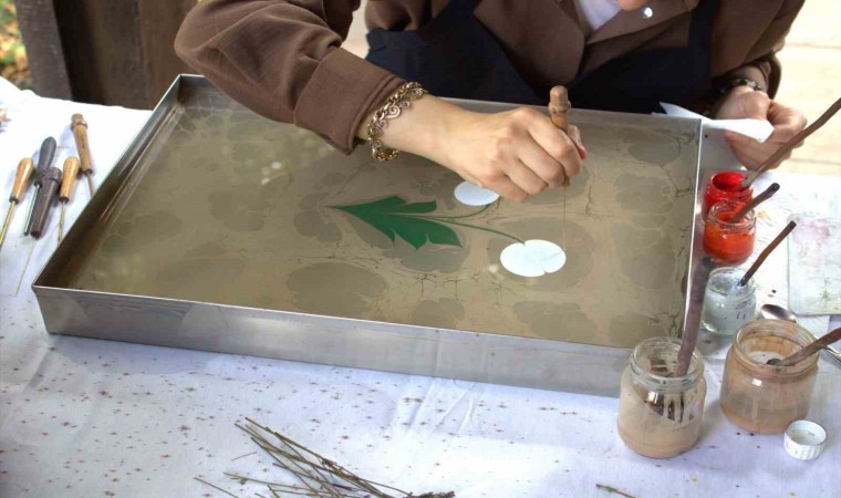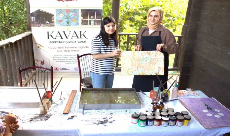Samsun’un Kavak ilçesinde ’ebru sanatı’, 4 asırlık Bekdemir Camisi’nden ilham alınarak icra edildi.