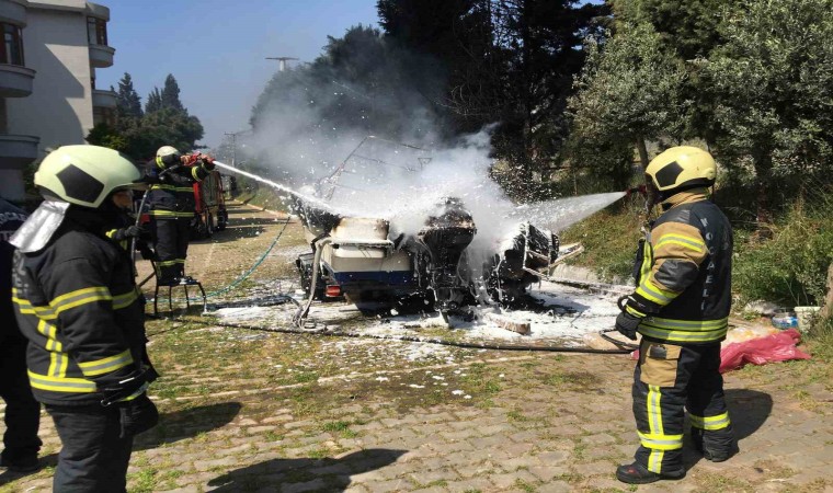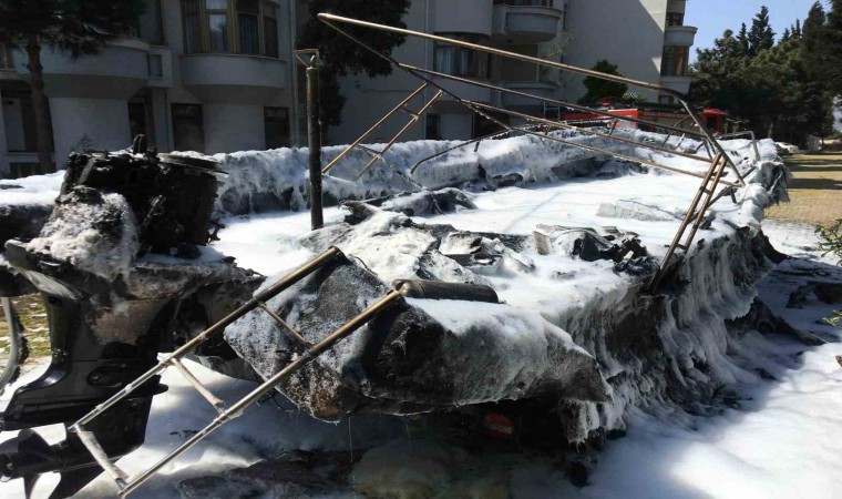 Olay, Şirinyalı Mahallesi sahil kesiminde bulunan sitenin bahçesinde meydana geldi. İş adamı Atakan A.’nın evinin bahçesinde bulunan yaklaşık 45 bin dolar değerindeki gezi teknesinde yangın çıktı. Yangın kısa sürede büyürken, siyah dumanlar bölgeyi kapladı. İhbar üzerine olay yerine itfaiye ve polis ekipleri sevk edildi. Kısa sürede olay yerine gelen ekipler, cayır cayır yanan tekneyi söndürmek için çalışma başlattı. Ekiplerin çalışmasıyla yangın söndürülürken, tekne ise küle döndü. Site sakinleri ise merakla olup biteni izledi.