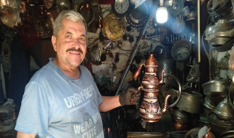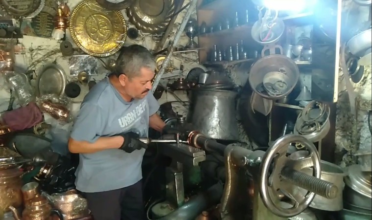 Kahramanmaraş’ta 60 yaşındaki bakırcı ustası, küçük iş yerinde birbirinden farklı ürünler üretip satışa sunuyor. Esnaf, mesleğini devam ettirecek gençlerin yetişmediğini, eski sirkülasyonun kalmadığını ve ürünlerin kullanım amacından çok hediyelik eşya olarak satıldığını söyledi.