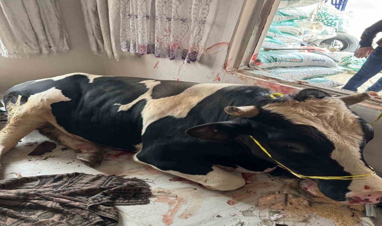 Burdur merkeze bağlı Kışla Mahallesi’nde hayvancılıkla uğraşan Ahmet Güner ve Sevgi Güner (60) çiftine ait 20 aylık, yaklaşık 450 kilo ağırlığındaki tosun, akıllara durgunluk veren bir olayla gündeme geldi. Kesime götürülmek için ahırdan çıkarılan tosun, kamyona yükleneceği sırada ürkerek evin camını kırıp salona girdi.