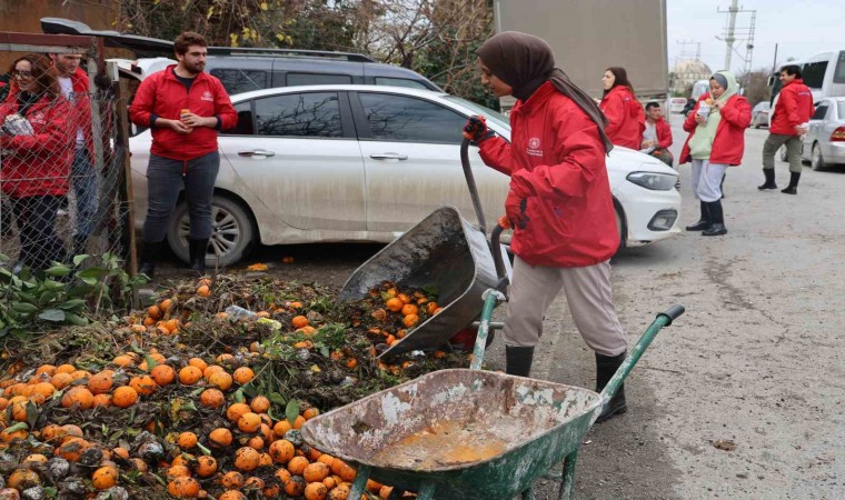 Hatay’ın Dörtyol ilçesine 46 şehirden gelen 200 gönüllü genç, dalda kalan narenciyeyi gönüllü olarak hasat etmeye başladı.