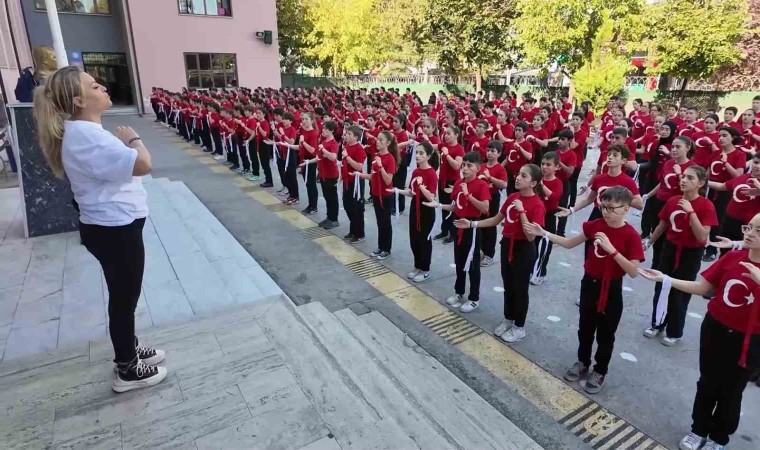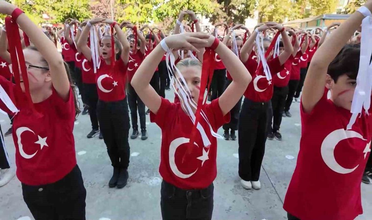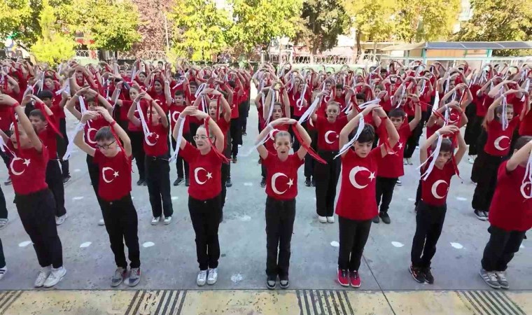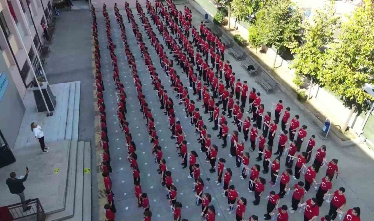 Kocaeli’de 480 kişiden oluşan ortaokul öğrencisi, Cumhuriyet’in 101. yılı dolayısıyla özel koreografi hazırladı.