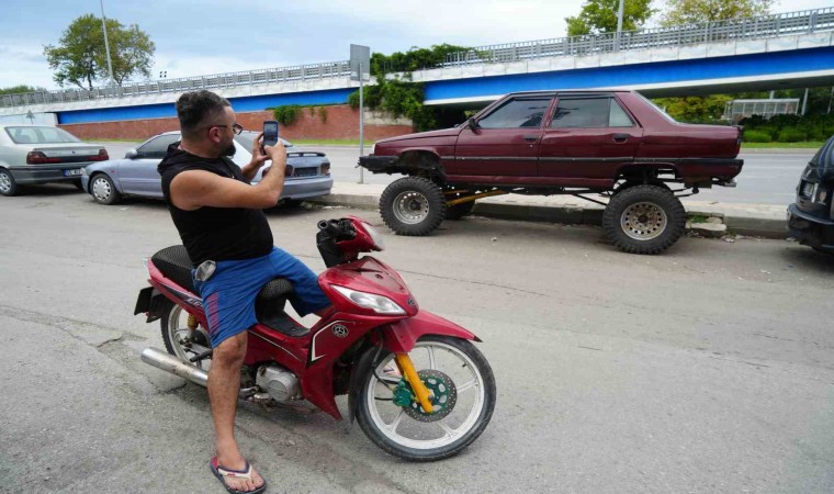 Sahibinin binlerce TL harcayarak 4x4 Off-road arazi aracına çevirdiği 1995 model Renault Broadway, bir süredir Samsun’da sanayide bekliyor. 7’den 70’e yoldan geçen herkesin dikkatini çeken araç, tekerlerinin yüksekliği ile de diğer araçlardan ayrılıyor. SUV ve jiplerden daha yüksek olan aracı gören vatandaşlar, cep telefonlarını çıkartarak, fotoğraf çektiriyorlar.