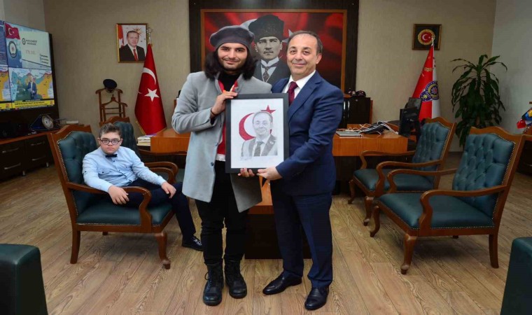 Polis memuru Osman Birincioğlu’nun atipik otizmli oğlu Mustafa Can Birincioğlu da Arıkan’ın resmini yapıp hediye etti.