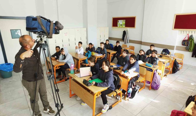 Edindikleri teorik bilgilerle hem sınıfta hem de okul bahçesinde oluşturulan alanda kamera ve diğer ekipmanlarla çekim yapan öğrenciler, arkadaşlarının kullandığı kameranın karşısında anons deneyimini yaşayan yaşayarak, mesleğin inceliklerini öğrenme fırsatı da buldu.