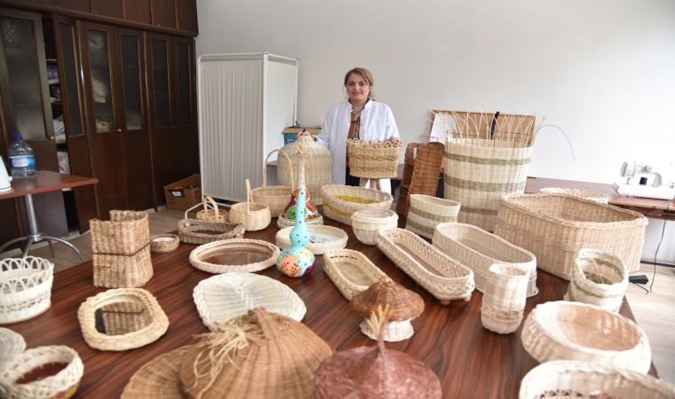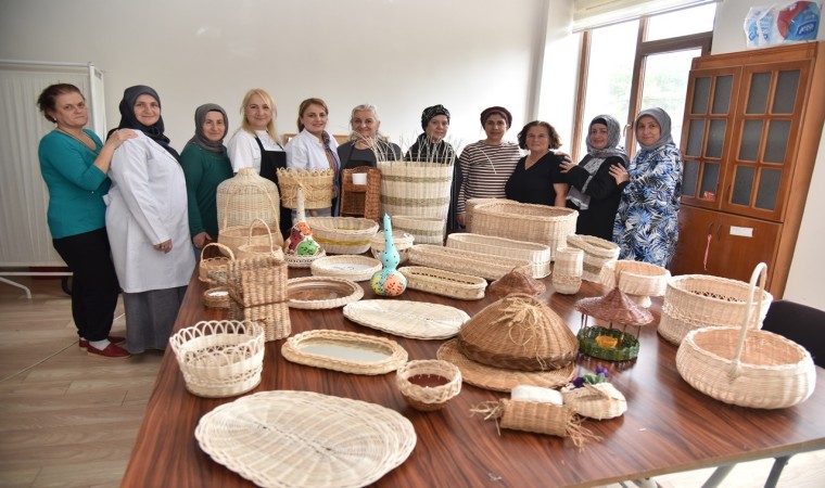 Kocaeli’nin Kartepe ilçesinde açılan kurslarda, geleneksel el sanatları branşlarından sepet örücülüğü modern çizgilerle sanata dönüşüyor.