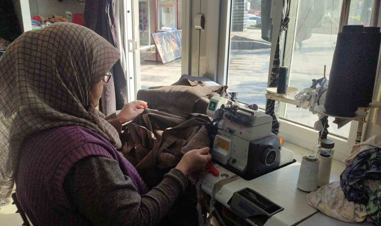 Kahramanmaraş’ta 5 çocuklu bir kadın depremde işyeri yıkılmasına rağmen konteynerde terzilik yapıyor.