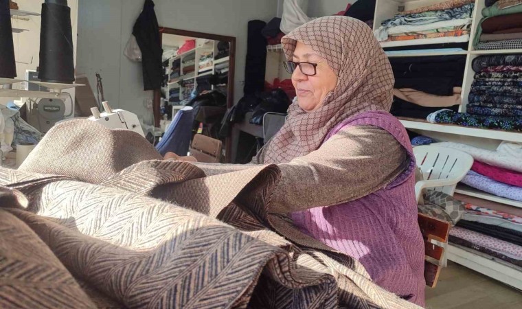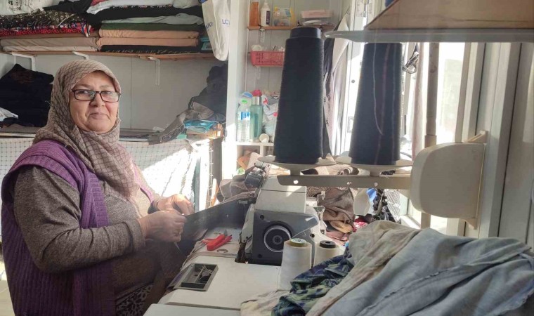 Türkoğlu ilçesinde yaşayan 56 yaşındaki Gülay Kısakürek, depremde iş yeri yıkıldığı için hayata ve zorluklara meydan okuyarak konteyneri atölyeye çevirdi.
