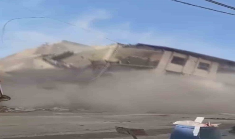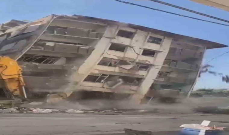 Hatay’da operatör, hasar verdiği 5 katlı binayı kırıcıyı yere vurarak titreşimle yıktı. O anlar cep telefonu kamerasına yansıdı.