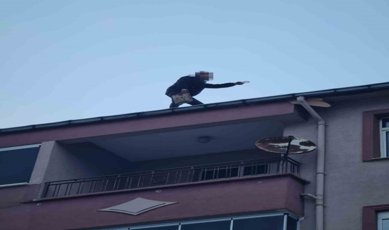 Zonguldak’ın Ereğli ilçesinde 5 katlı binanın çatısına çıkarak aşağıya atlayacağını söyleyen şahıs yürekleri ağza getirdi. Ekiplerin 1,5 saat süren çabalarının ardından şahıs ikna edilerek aşağıya indirildi.