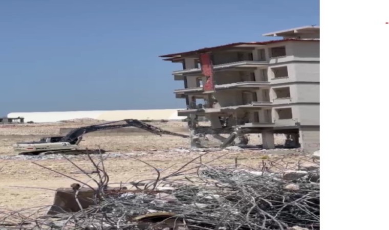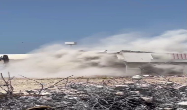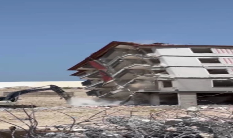 Kahramanmaraş merkezli depremlerde ağır hasar alan Hatay’da mahkeme süreci sona eren binaların yıkım ve enkaz kaldırma çalışmaları aralıksız sürüyor. Antakya ilçesi Ekinci Mahallesi’nde bulunan 5 katlı apartman da iş makinesiyle kontrollü olarak yıkıldı. Binanın kağıt gibi yerle bir olma anı ise saniye saniye kameralara yansıdı. 5 katlı binanın yıkımı esnasında herhangi bir olumsuzluk yaşanmadı.