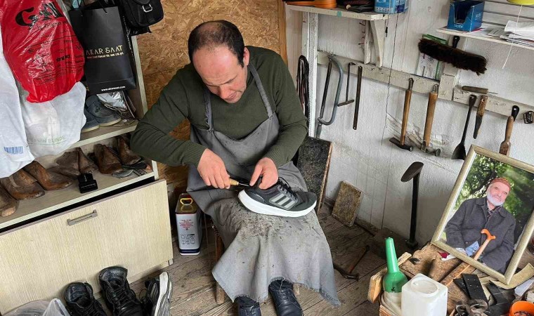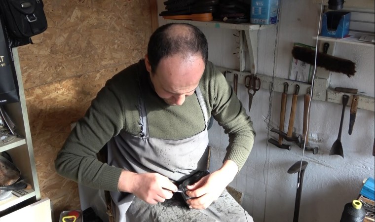 Sinop’ta bir ayakkabı tamircisi, dede mesleğini 5 metrekarelik dükkanda sürdürüyor.