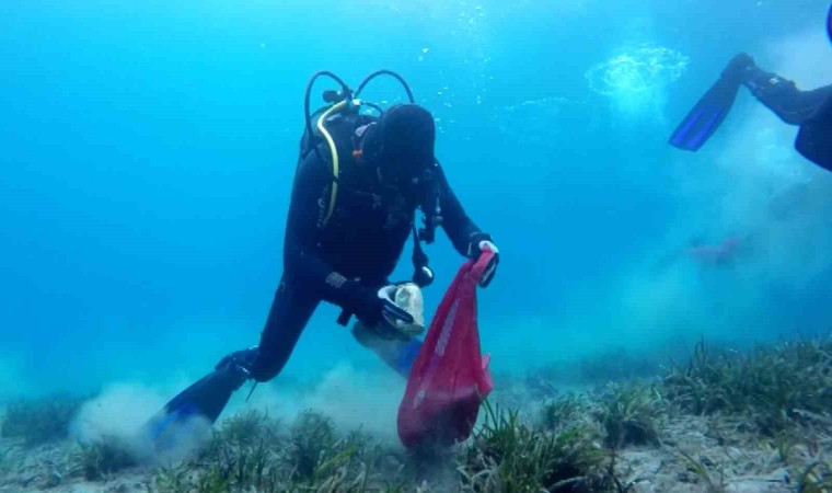 Deniz yüzeyi ve dibinde bulunan çöpler temizlendi