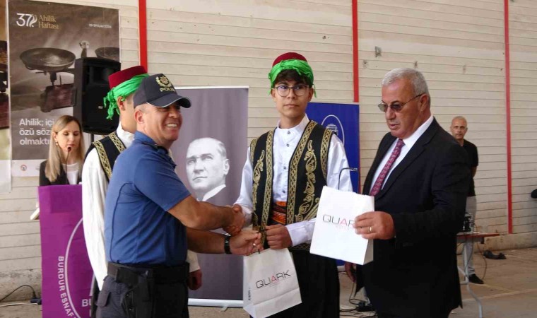 Konuşmaların ardından yılın ahisi seçilen saat tamir ustası Mehmet Örtel’e Vali Yardımcısı Faruk Ekiz tarafından cübbesi giydirilerek plaket takdim edildi. Ayrıca İlin Kalfası seçilen Busenur Kahraman’a, Yılın Çırağı seçilen Ramazan Enes Atasoy’a ve örnek esnaf, örnek, kalfa ile örnek çıraklara protokol üyeleri tarafından ödül ve plaket verildi.
