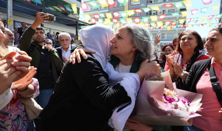 Partililer, ardından il binasına geçerken, Ankara 22. Ağır Ceza Mahkemesi’nde dün görülen Kobani Davası’nda tutuklu kaldığı süre göz önüne alınarak tahliyesi kararlaştırılan Gültan Kışanak ile Kobani Davası’nda 10 yıl hapis cezası alan Mardin Büyükşehir Belediyesi Başkanı Ahmet Türk, Diyarbakır Büyükşehir Belediyesi Başkan Ayşe Serra Bucak Küçük ile birlikte DEM Parti Diyarbakır İl Başkanlığı’nı ziyaret etti.
