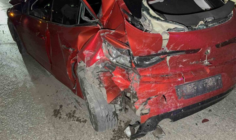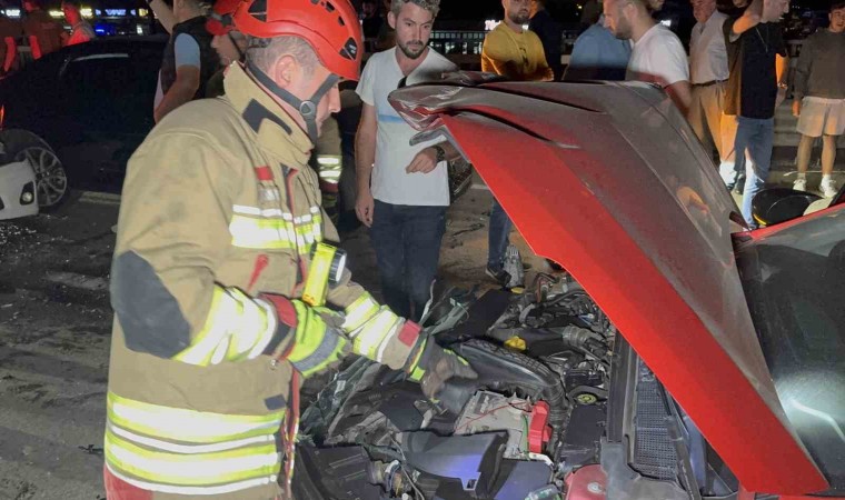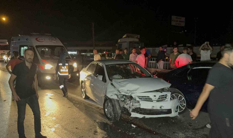Düzce’de 2 aracın çarpıştığı kazaya, trafikte seyrederken kaza alanını fark etmeyip duramayan 4 araç daha karıştı. 6 aracın adeta birbirine girdiği kazada 4 kişi yaralandı.