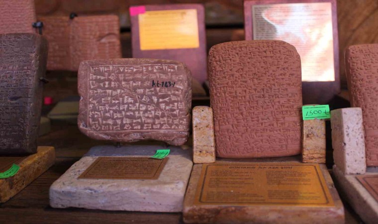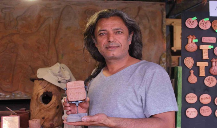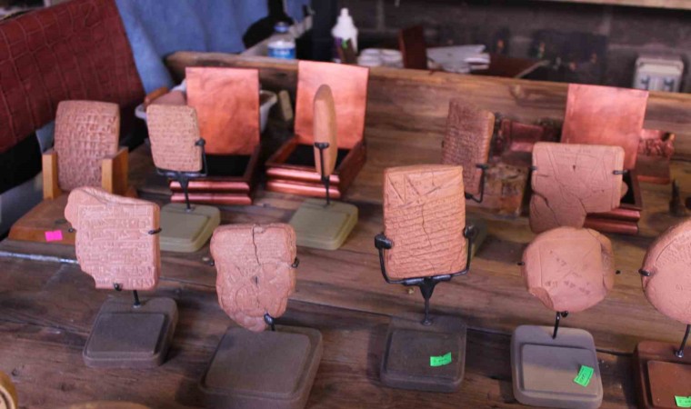 Kayseri’de heykel sanatçısı Ali Akargöl, 6 bin yıl önceye dayanan arkeolojik bulgu ve belgelerin gün ışığına çıkarıldığı Kültepe Kaniş-Karum Ören Yeri’nde çıkan tabletlerdeki yazıları kile işliyor.