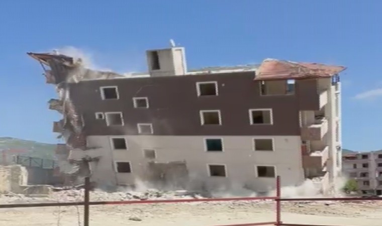 Kahramanmaraş merkezli depremlerde büyük yıkımın yaşandığı Hatay’da mahkeme süreci tamamlanan binalar yıkılmaya devam ediyor. Depremin vurduğu Defne ilçesi Elektrik Mahallesi’nde mahkeme süreci tamamlanan 6 katlı bina, iş makinesinin darbesiyle kontrollü olarak yıkıldı. 6 katlı binanın kontrollü olarak yıkıldığı anlar cep telefonu kamerasıyla saniye saniye görüntülendi. Görüntülerde; 6 katlı binanın kağıt gibi yerle bir olduğu görüldü. 6 katlı binanın kontrollü yıkımı sırasında herhangi bir olumsuzluk yaşanmadı.