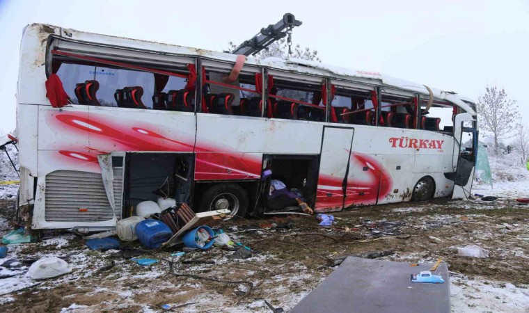Kazayla ilgili soruşturma başlatılırken, devrilen otobüsten ise geriye enkazı ve yolcuların etrafa saçılmış eşyaları kaldı.