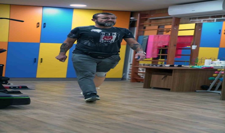 Kahramanmaraş merkezli asrın felaketinde enkaz altında bir bacağını kaybeden Murat Akkoç, yeni proteziyle artık yürüyebiliyor.