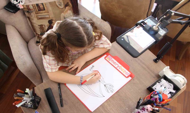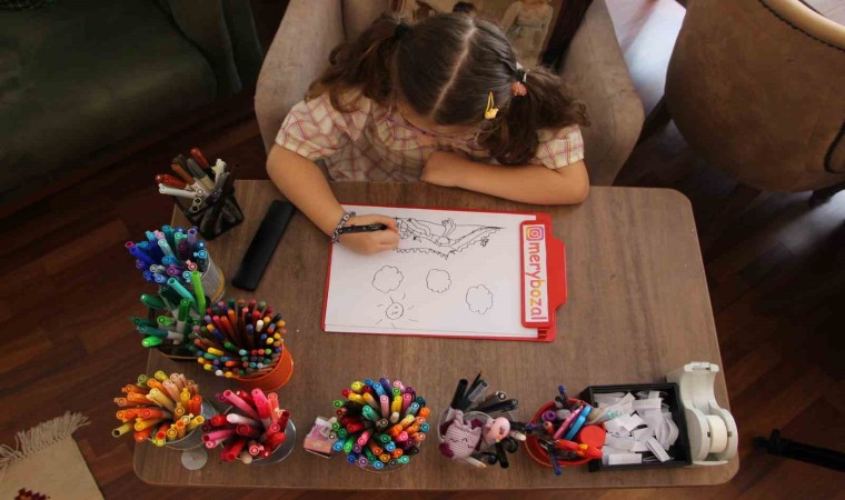 Baba Mimar Miraç Bozal da, Meryem’i yaşıtlarından ayıran özelliğinin hızlı düşünüp hızlı çizmesi olduğunu kaydederek “Meryem sanırım 2.5 yaşındaydı. Bebeklerin çiz-sil tabletleri var onlardan aldık. Onunla baya ilgilendiğini gördüm. Sonrasında ise hep Meryem’in izlemeye başladım. Acaba yapabilir mi diye malzemesini eksik etmedim. Herhangi bir kursa gitmedi. Hafızasına alıp çiziyordu. Meryem’in yaşıtlarında ayıran özelliği hızlı düşünüp hızlı çizmesi. Kaş, göz gibi ayrıntılara çok dikkat ediyor. Bizde bunu geliştirecek yeni yöntemler aramaya çalıştım. Çeşitli tezlere baktım. İşin uzmanı resim öğretmenlerine sordum ve bugünlere geldik. 5 dakikadan fazla bir resme zaman ayırmıyor. Hemen bitirmesi gerekiyor gibi davranıyor. Karikatüre yöneliyor gibi geldi. Filin üstünde kaplumbağa, gitar çalan kuş gibi çeşitli şeyler çiziyor. Bir fanusun içerisine resim konuları yazarak atıyoruz. Meryem onlardan birini çekip çizmeye başlıyor. Çizgi filmlerden de etkileniyor. Hemen ona göre resimler yapıyor. Savaş resimleri de çok farklı ejderha da çizebiliyor. Anatomik dinozor iskeletleri çiziyor. Repertuarı çok geniş. Herhangi bir şey söylediğimizde onu hemen çizebiliyor. Günümüz sosyal medya çağı. Bir şekilde keşfedilmesi için videolar paylaşıyoruz. Takipçileri artıyor. Çok güzel geri dönüşler alıyoruz. Resim öğretmenleri ve ressamlardan ‘kesinlikle eğitim vermeyin, bir zorlama yapmayın, malzemesini eksik etmeyin’ şeklinde geri dönüşler alıyoruz. Şimdilik akışına bırakın su akar yolunu bulur diyorlar. Şimdilik eğitim almasına bile karşılar. Ama illa ki ileride sulu boya tekniği, pastel boya tekniğini geliştirmek isteyecektir diye düşünüyoruz. 4 yaşından beri çizdiği bütün resimleri saklıyorum. 4 yaşından önce de beğendiğimiz resimlerinin fotoğraflarını saklıyoruz. Aylık en az 50 tane saklanabilir resmi var. Bazılarını bunlardan çok yaptı diye saklamıyoruz” ifadelerini kullandı.