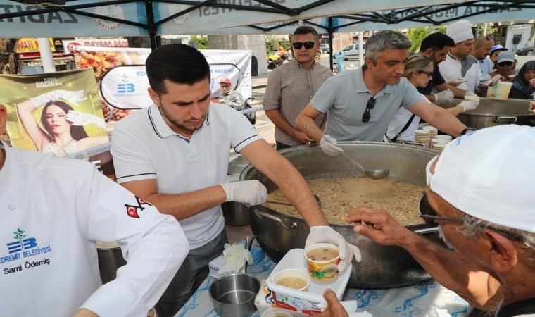 Balıkesir’in Edremit ilçesinde Edremit Belediyesi tarafından 6 ayrı yerde toplam 15 bin kişiye aşure ikramında bulunuldu.