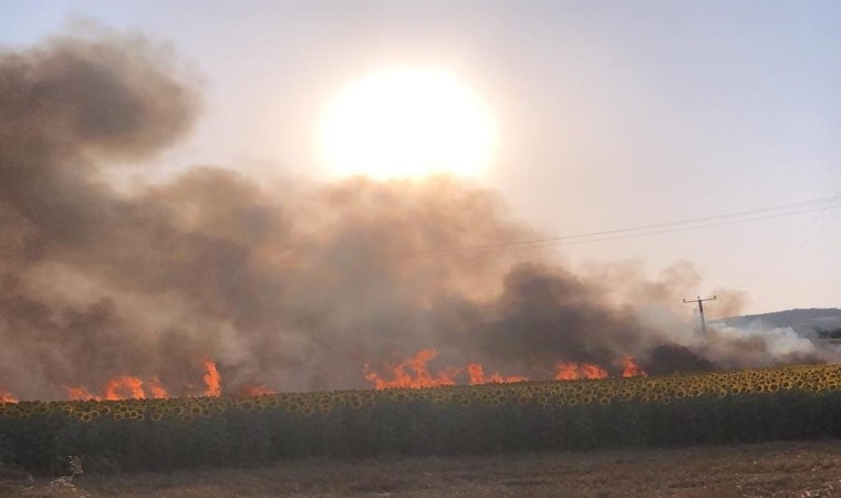 Bursa’nın İnegöl ilçesinde enerji nakil hattı kopunca ekin tarlalarında yangın çıktı. Rüzgarın etkisiyle yayılan yangın ekili 60 dönüm buğday tarlalarını yok etti.
