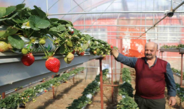 Kahramanmaraş merkezli depremlerin vurduğu Hatay’da yaralar sarılmaya devam ediyor. Türkiye’nin en bereketli topraklarından olan Hatay’da çok sayıda meyve ve sebze üretimi gerçekleşiyor. Bölgenin ılıman iklimine uygun olarak üretilen çilek, Yayladağı ilçesinde oldukça rağbet görüyor. Yayladağı ilçesi Bezge Mahallesi’nde yaşayan Abdullah Yıldırım, evinin bahçesine kurduğu 60 metrakarelik serada çilek üretmeyi başardı. İlk kez bu yıl ekim yapan ve hasada başlayan Yıldırım’ın amacı yaşadı bölgede serada çilek üretimini arttırarak depremin vurduğu şehrine ekonomik anlamda katkı sağlamak.