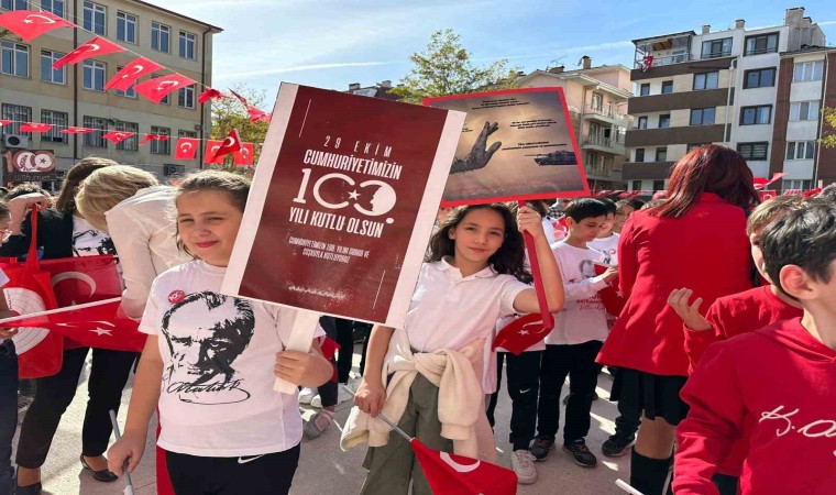 Eskişehir’de 600 ortaokul öğrencisi, Cumhuriyetin 100’üncü yılına özel hazırladıkları dans gösterisini senkronize bir şekilde sergilerken, düzenledikleri kortej ile mahalle halkını da kutlamalara dahil etti.