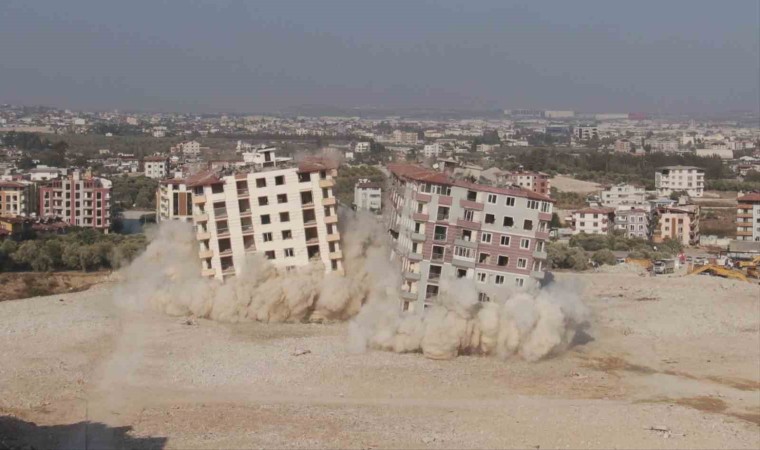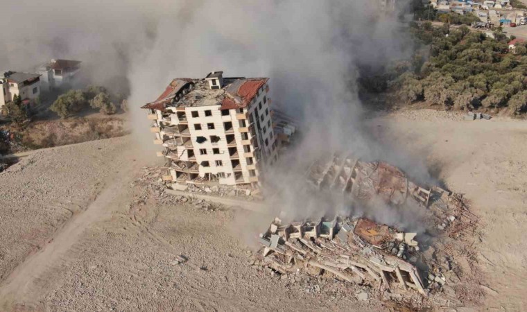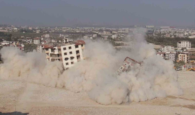 Depremin vurduğu Hatay’da 640 kilogram patlayıcı kullanılarak dinamitle patlatılan 4 bina yerle bir oldu. Binaların kağıt gibi yıkıldığı anlar dron kamerasına yansıdı.