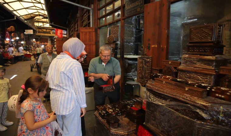 Gaziantep Bakırcılar Çarşısı’nda 65 yıldır sandık işlemeciliği yapan Osman Esterli, genç kızların çeyizlik sandıklarını el emeğiyle yapıyor.