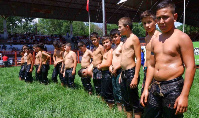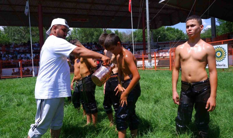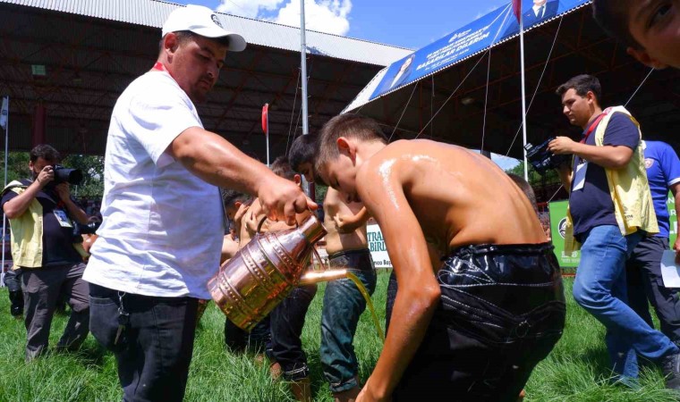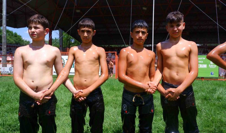 663. Kırkpınar Yağlı Güreşleri’nde heyecan minik 1 boy pehlivanların güreşleriyle başladı. Cuma namazının ardından Edirne Sarayiçi Er Meydanı’na gelen pehlivanlar, kule hakemlerinin çağrısıyla hazırlıklarını tamamladı. Minikler, yağlanmanın ardından rakipleriyle kol bağladı.