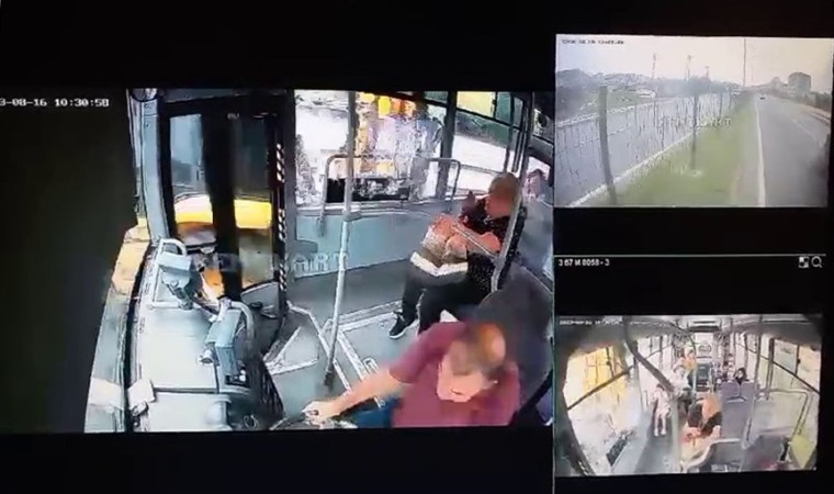 Görüntülerde çarpışmanın etkisiyle büyük korku yaşayan yolcuların çığlıklar içerisinde araçtan indikleri yer alıyor.