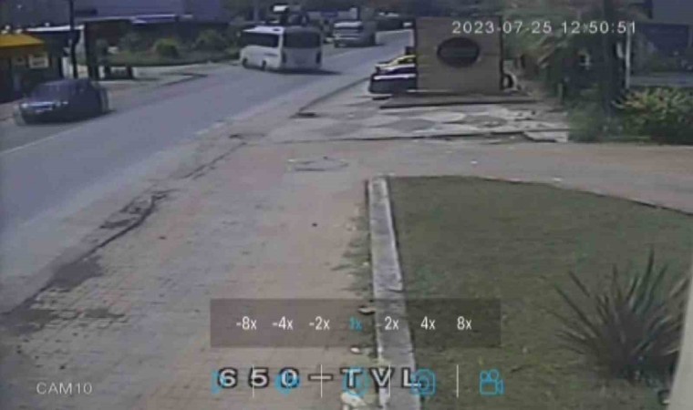 Hasanpaşa Mahallesi Şehit Cevdet Koç Caddesi’nde yabancı uyruklu turistleri taşıyan E.K. (41) idaresindeki 34 GUJ 400 plakalı tur midibüsü, manevra yapmaya çalıştığı sırada karşı yönden gelen O.Ö. (59) yönetimindeki 54 AHJ 386 plakalı hafriyat kamyonuyla çarpıştı. Meydana gelen kazada midibüsteki biri çocuk toplam 7 turist yaralandı. Kaza anı ise güvenlik kamerasına yansıdı. Görüntülerde; otobüsün dönüş yapmak istediği esnada karşı istikametten gelen hafriyat kamyonu ile çarpıştığı anlar yer aldı.
