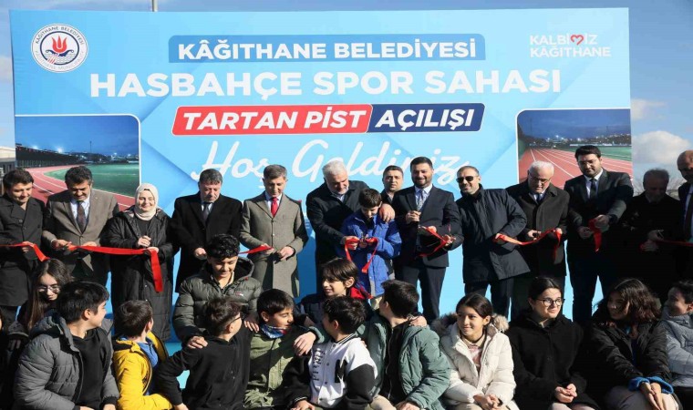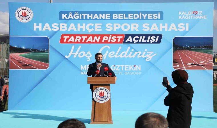 Kâğıthane Belediye Başkanı Mevlüt Öztekin açılışta yaptığı konuşmada, “Kağıthane Belediyesi olarak Gençlik ve Spor Bakanlığı ile birlikte bu güzel, olimpik diyebileceğimiz çok özel bir tartan pistin açılışında birlikteyiz. Hasbahçe Spor Sahası’nın geçtiğimiz yıllarda tamamen zeminini yenilemiştik. Çocuklarımız burada çok güzel bir şekilde futbol oynayıp, müsabakalarını yapıyorlar. Burada çalışma yaparken futbol sahasını da kapatmak zorunda kalmıştık. Çocuklarımız yan tarafta ve diğer yaptığımız sahalarda çalışıyorlardı. Bu haftadan itibaren gençlerimiz, kulüplerimiz, buradaki sahayı kullanmaya başlayacaklar. Hayırlı olsun. Antrenmanlar için cumartesi ve Pazar günlerine planlama yapabiliriz. Bir sonraki haftada futbol maçlarına verebiliriz. Bizim burada 32 tane futbol kulübümüz var. Her birinde yaklaşık 500’e yakın öğrencimiz var. Toplama baktığımızda 10 bine yakın öğrencimiz bu kulüplerden hizmet alıyor. Futbol okullarına gidiyorlar, spor yapıyorlar. Sporlar ilgilenen çocuklarımız hem derslerinde başarılı oluyorlar hem de hayata daha hızlı başlıyorlar. Bugünün çağında özellikle gençlerimizin teknolojiden ziyade böyle güzel sahalarımızda değerlendirmiş oluyorlar. Çocuklarımız için sadece bu sahalar değil belediyelerimizin kültür merkezleri var. Tiyatro, sinema gösterimleri, söyleşiler ve seminerler var. Spor sahalarımızla birlikte kapalı spor alanlarımız var. Yüzme, basketbol, masa tenisi gibi 22 ayrı branşta çocuklarımız eğitimler alıyor. Büyüklerin de aldığı eğitimlerle beraber toplam 100 bine yakın vatandaşımız Kağıthane Belediyesi’nin spor alanlarından yararlanmış oluyor. Nüfusumuz toplam 400-450 bin civarında. Yetişkin nüfusumuz 320 bin civarında. Kağıthane’mizde gece gündüz çalışırken, çocuklarımızın, gençlerimizin, büyüklerimizin, kadınlarımızın, engelli kardeşlerimizin ve herkesin yanında olmaya devam ediyoruz” dedi.