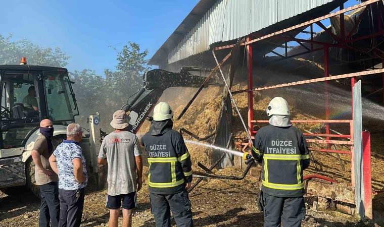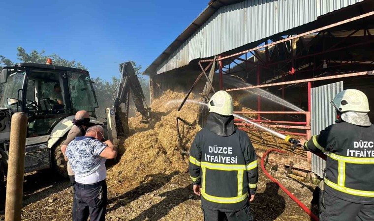 Düzce’de 70 büyükbaş hayvanın bulunduğu ahırda yangın çıktı. Hayvanlar güvenli alanlara alınırken, yangını söndürmeye çalışan 12 kişi dumandan etkilendi, 25 ton saman ise kullanılamaz hale geldi.