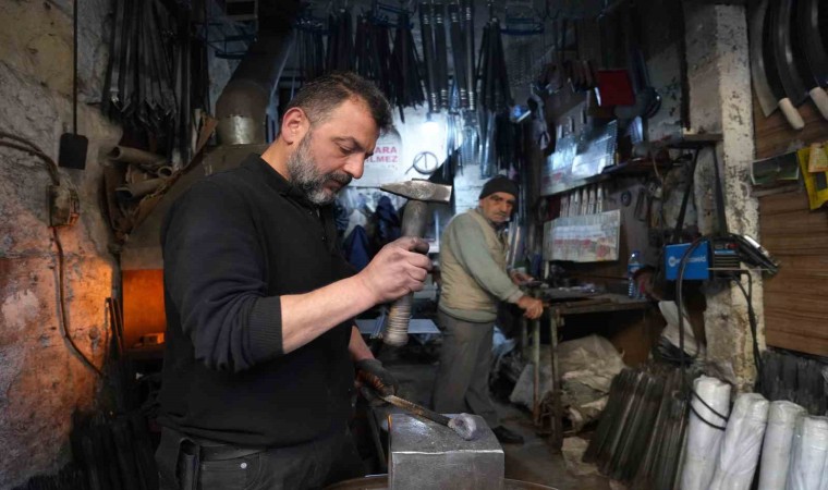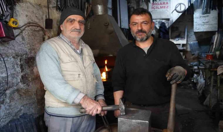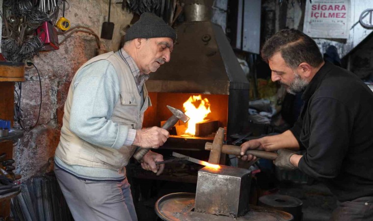 70 yıldır demircilik yaptığını söyleyen Hasan Okyay, soğuk aylarda demirin sıcaklığıyla ısındıklarını da belirterek, “Yaklaşık 70 senedir demircilik mesleğini yapıyorum. Mesleğimizin geçmişi ise 100 yıla dayanıyor. Normalde anahtar yapıyorduk şimdi şiş işine de başladık. Yaptığımız iş soğuk havalarda bize iyi geliyor. Ateş yakmaktansa demir için ocağı açıyoruz hem demir dövüyoruz hem ısınıyoruz. Ustamızdan devraldığımız iş budur” ifadelerini kullandı.