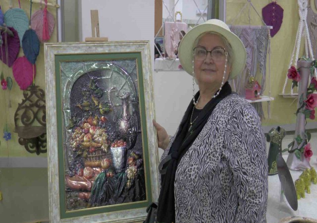 FAHİRE GÜNGÖR, KURSLARDA YAPTIĞI ÇALIŞMALARI İLE HEM KENDİ ESERLERİNİ ÜRETİYOR HEM DE SANAT SEVGİSİNİ CANLI TUTUYOR.