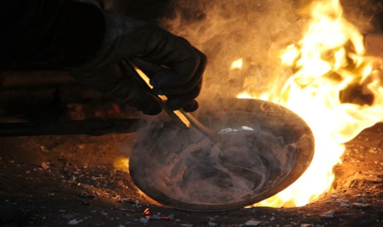 Çorum’un Alaca ilçesinde kalaycılık mesleğinin son temsilcilerinden olan 76 yaşındaki Salih Dokuz, 69 yıllık mesleğini ilk günkü aşkla yapıyor.