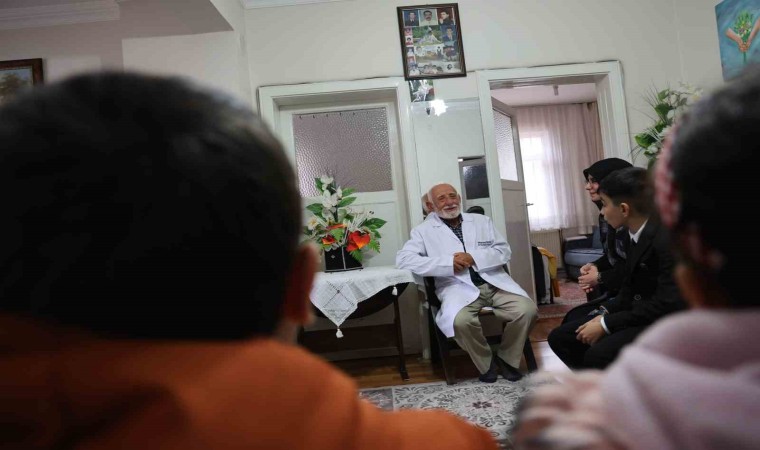 Öğrencilerden Ahmet Tarık da, "24 Kasım Öğretmenler Günü dolayısıyla Mehmet öğretmeni ziyarete geldik. Bu vesile ile bütün öğretmenlerin günün kutluyorum" şeklinde konuştu
