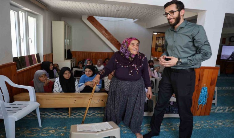Akoluk Camii imam hatibi Muhammed Doğaç da eşinin desteği ile kadınlar için Kur’an kursu verildiğini kaydederek, “Menekşe teyzemin yaşı 80’e yakın ama bahanesi yaşı kadar değil. Bazen mahallemizde çağrı yapıyoruz sağlıklı bireylerin bahanesi oluyor ama Menekşe teyzemiz öğrenme azminin hiç bahanesi yok. ‘Anneler ve kızları camiye’ projesi dedik ve eşim Allah razı olsun desteği ile bunu başardık. Menekşe teyzemin azmi örnek. Sürekli sorar öğrenmek ister. Bizlerde onunla gurur duyuyoruz. Kur’an kursunda elinden geleni fazlası ile yapıyor. Bu niyet ve azmi de beni ve eşimi çok mutlu ediyor” diye konuştu.