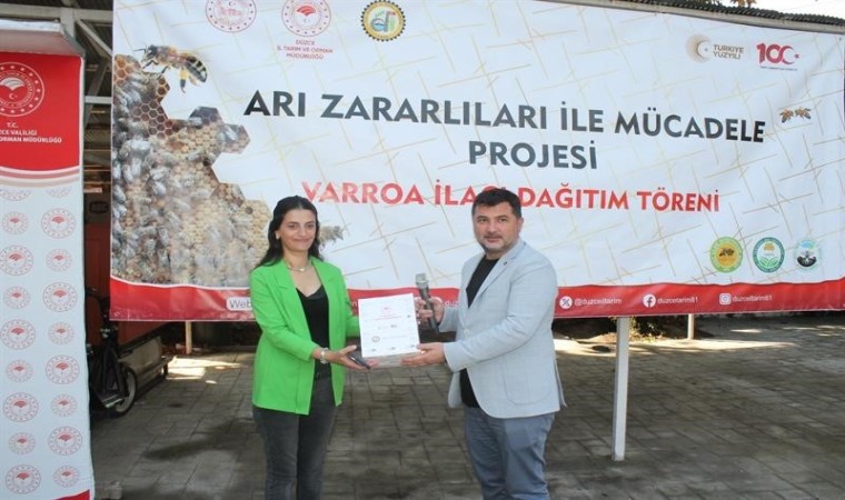 Arı yetiştiriciliğinin geliştirilmesi ve arı sağlığının korunması amacıyla Arı Zararlıları ile Mücadele Projesi çerçevesinde Düzce’de faaliyet gösteren 786 arıcıya 65 bin kovan için ilaç dağıtım töreni yapıldı.